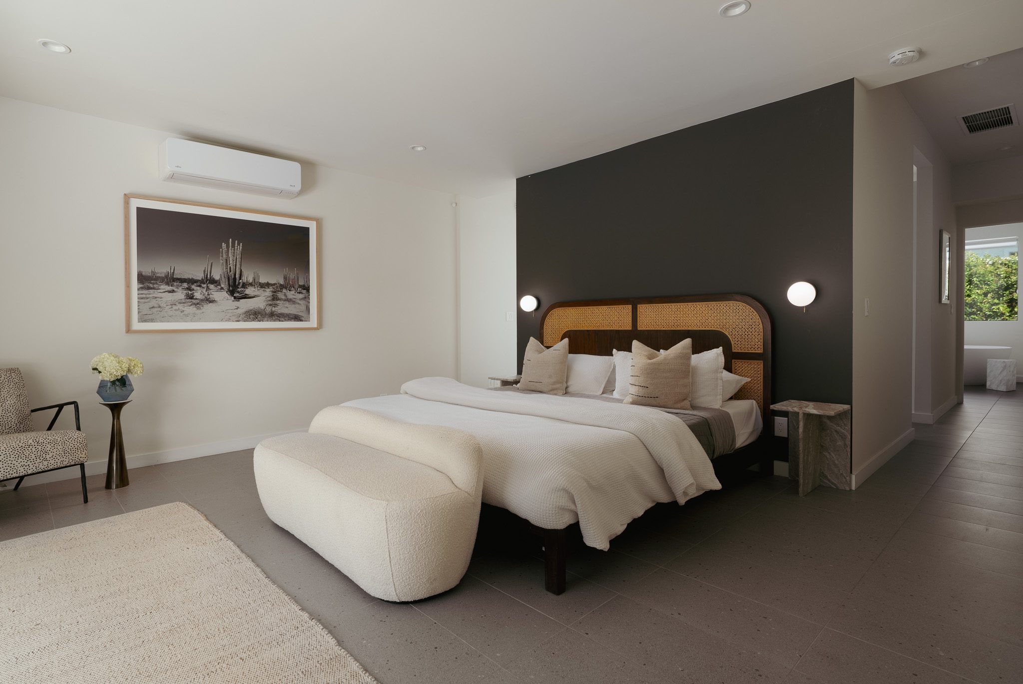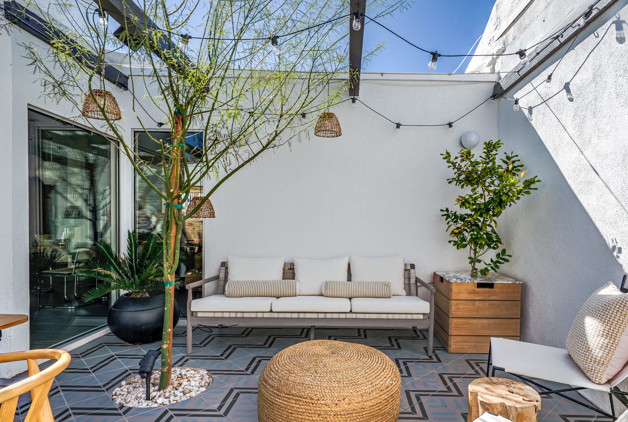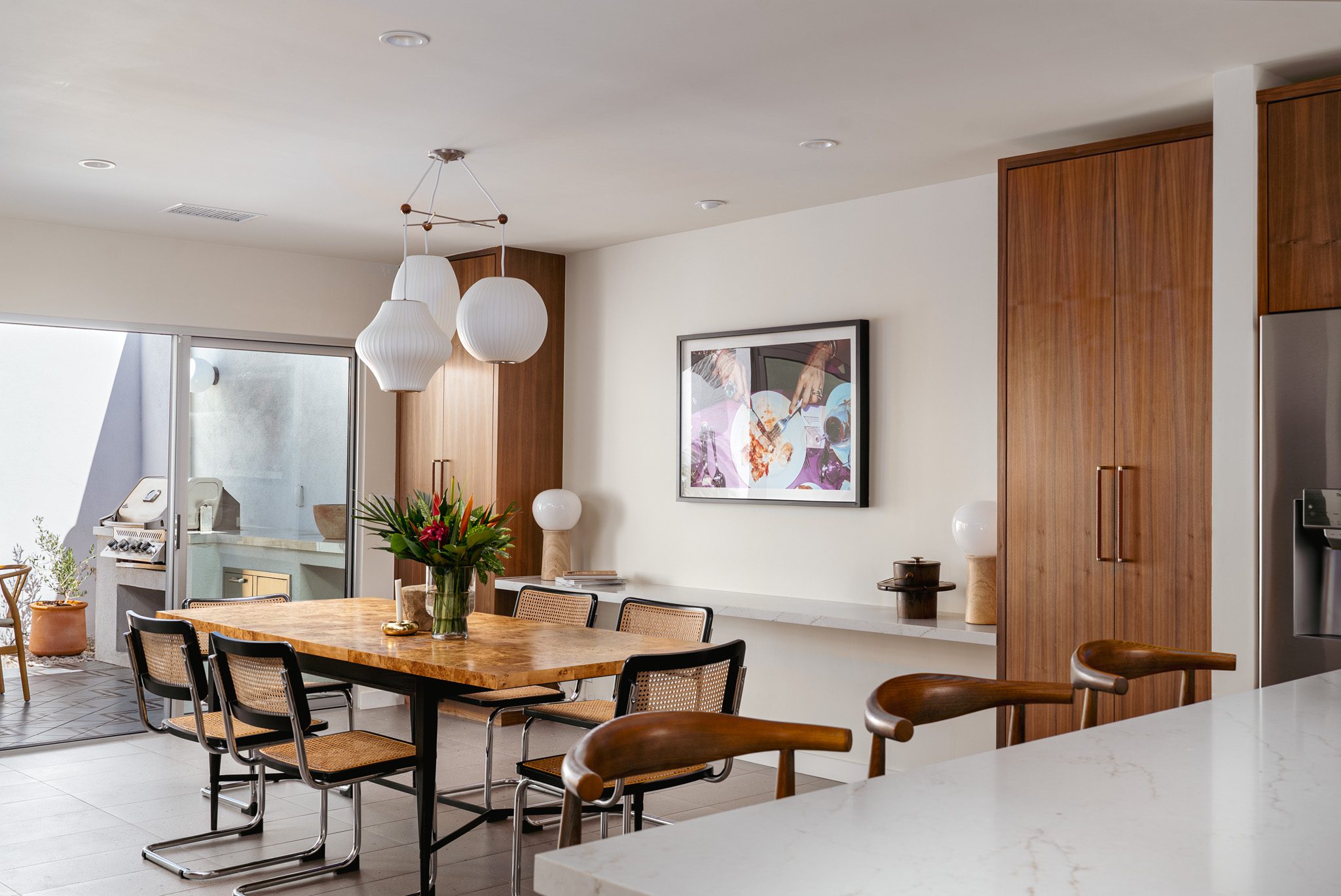Logo for T&M Builders and Design Inc., featuring a stylized red “T” and “M” with a hammer design. Background includes a house silhouette with architectural lines.