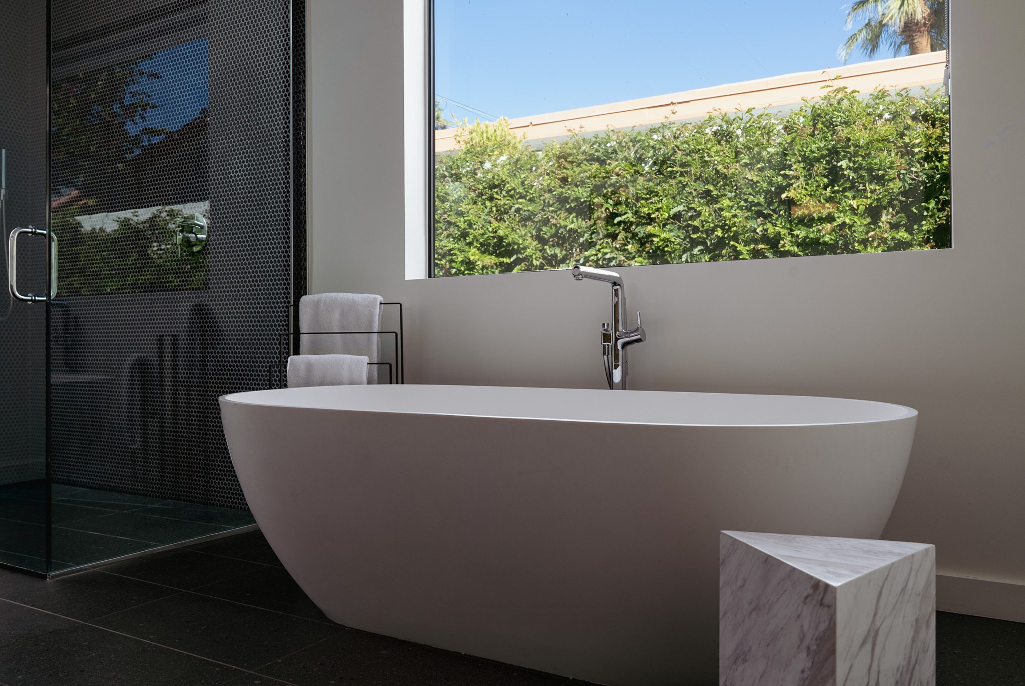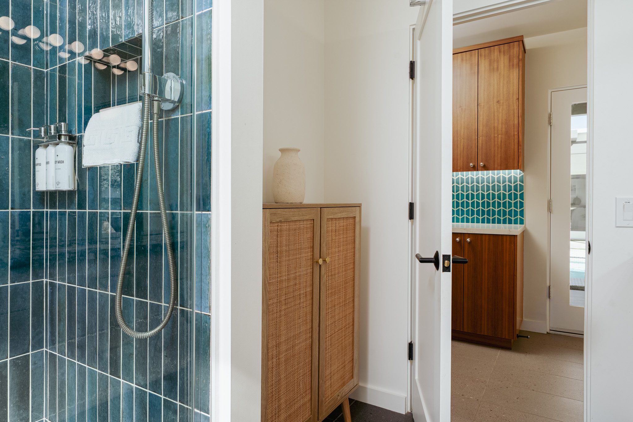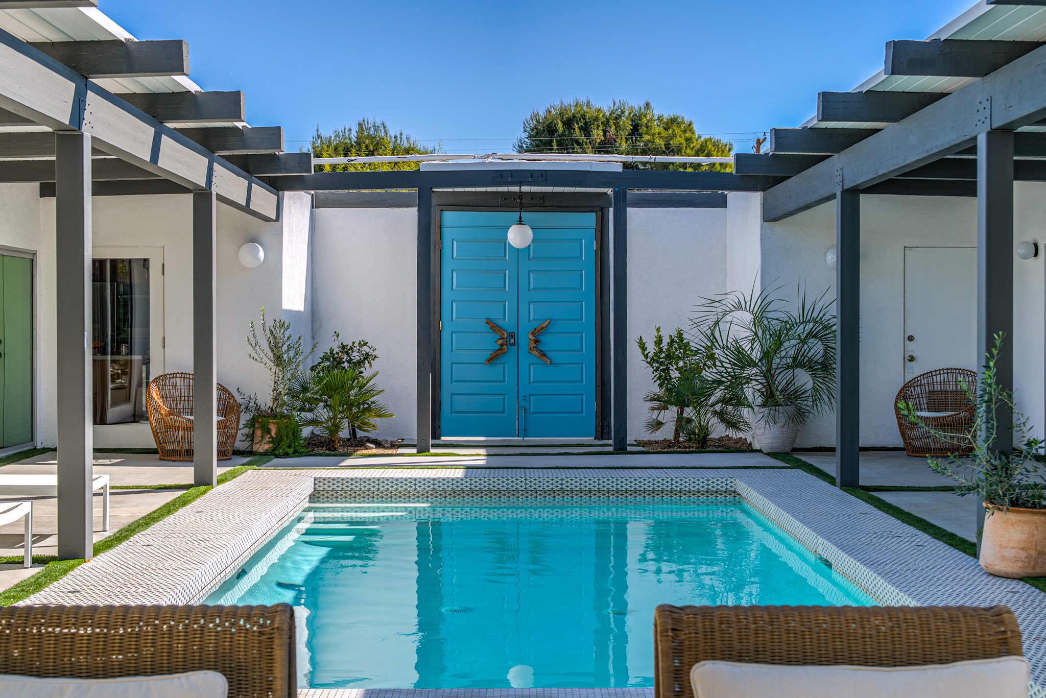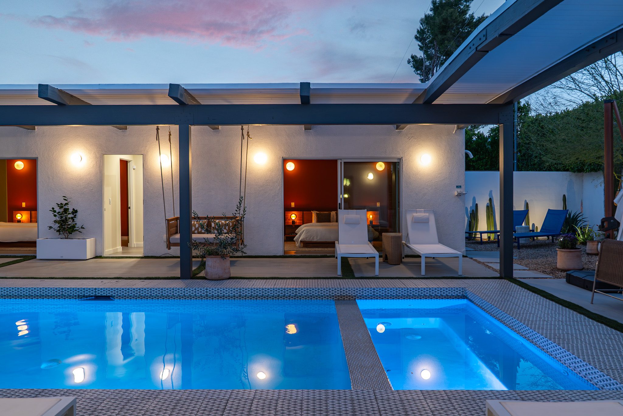 Logo for T&M Builders and Design Inc., featuring a stylized red “T” and “M” with a hammer design. Background includes a house silhouette with architectural lines.